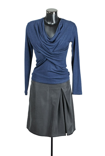 Die Farbstimmung der Kollektion «Die blaue Stunde» nimmt die Färbung des Himmels während der Zeit der Dämmerung nach Sonnenuntergang bis zum Eintritt der nächtlichen Dunkelheit auf. Materialien in verschiedenen Blautönen bis hin zu Graphit und Schwarz sind zu finden. Minimalistisch schlicht durch den Tag oder elegant kombiniert in den Abend.