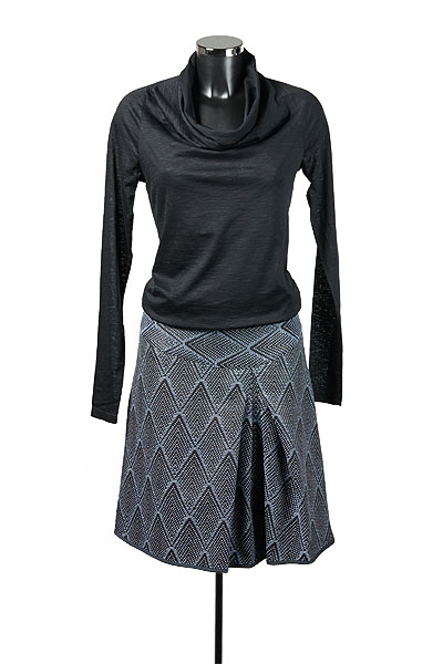 Die Farbstimmung der Kollektion «Die blaue Stunde» nimmt die Färbung des Himmels während der Zeit der Dämmerung nach Sonnenuntergang bis zum Eintritt der nächtlichen Dunkelheit auf. Materialien in verschiedenen Blautönen bis hin zu Graphit und Schwarz sind zu finden. Minimalistisch schlicht durch den Tag oder elegant kombiniert in den Abend.